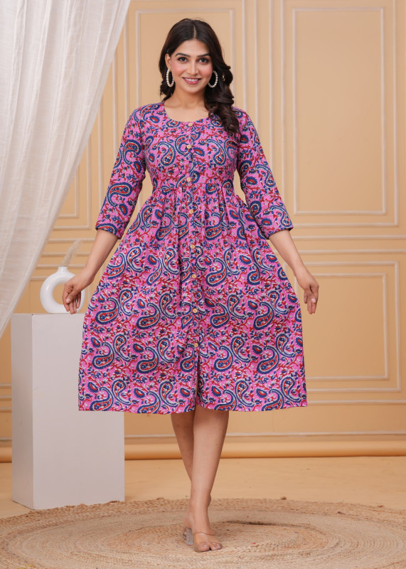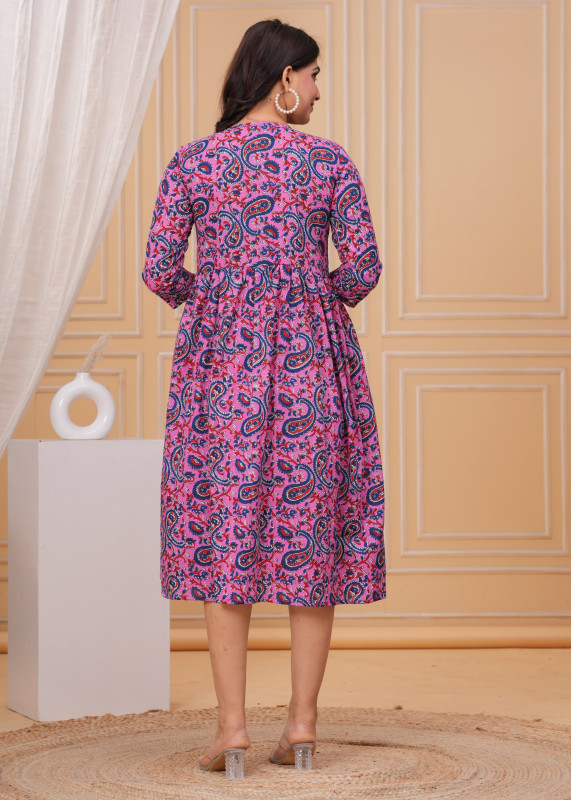 Pink and blue The Jaipur Paisley Dream: Handcrafted Pink Cotton Flared Anarkali Kurta one piece dress